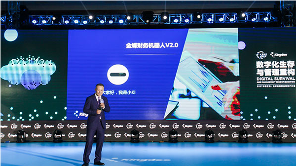 10月15日,在上海2017中國管理·全球論壇上,金蝶重磅發布基于云端的財務機器人,金蝶財務機器人將應用云計算、大數據、圖像語音識別、LBS等AI技術,為企業提供多場景全方位的智能財務服務。
