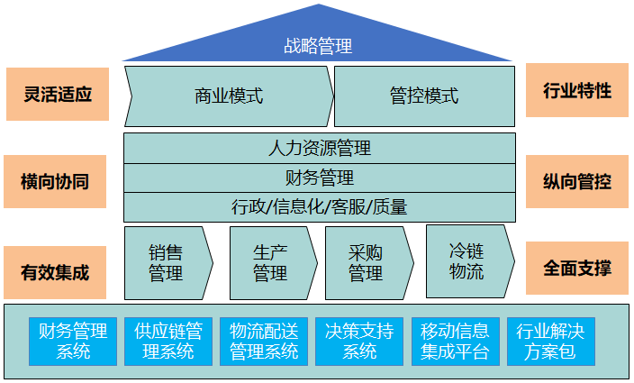 廣西田園數字化轉型方案基于金蝶云星空平臺構建,建立以戰略管理為頂層,以商業模式、管控模式為核心,以及財務管理、供應鏈管理、生產管理等為基礎的軟件支撐與安全保障體系。本次數字化轉型的整體目標不僅是優化現有業務,而是要創造新的客戶體驗,打造新的智能化、數字化服務,重塑企業的運營模式,整合供應鏈資源,匯集經銷商、零售店等渠道數據,精確定制農戶服務。在管理上要求:集團的縱向管控能力,整合管理鏈條;在機制上要求:保障組織單元間業務協同,達到縱向到底、橫向到邊的管理能力。形成以客戶驅動、戰略驅動、產品驅動、服務驅動、創新驅動的模式,增強廣西田園集團核心競爭力。