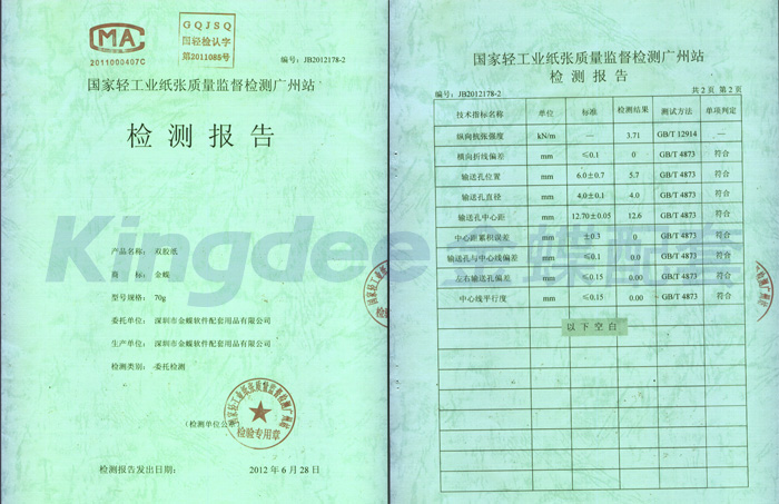 金蝶憑證紙已通過國家相關質檢機構的質量檢測,質量保證